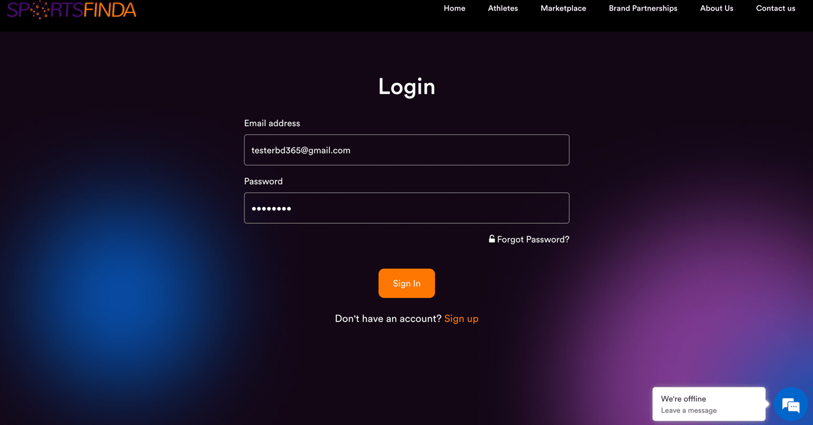 Sportsfinda (Website Testing)
